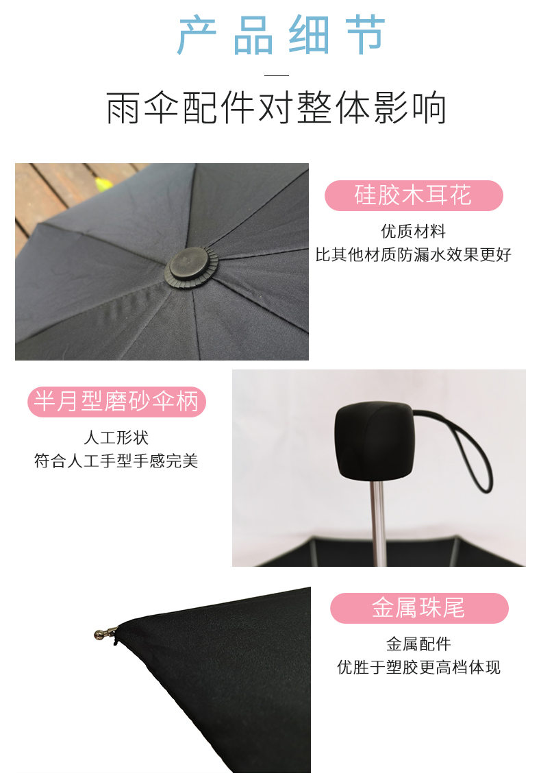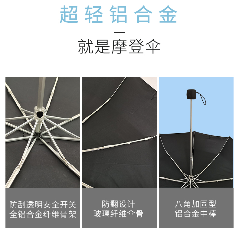 全协三折铝合金超轻伞架雨伞定制工厂直销