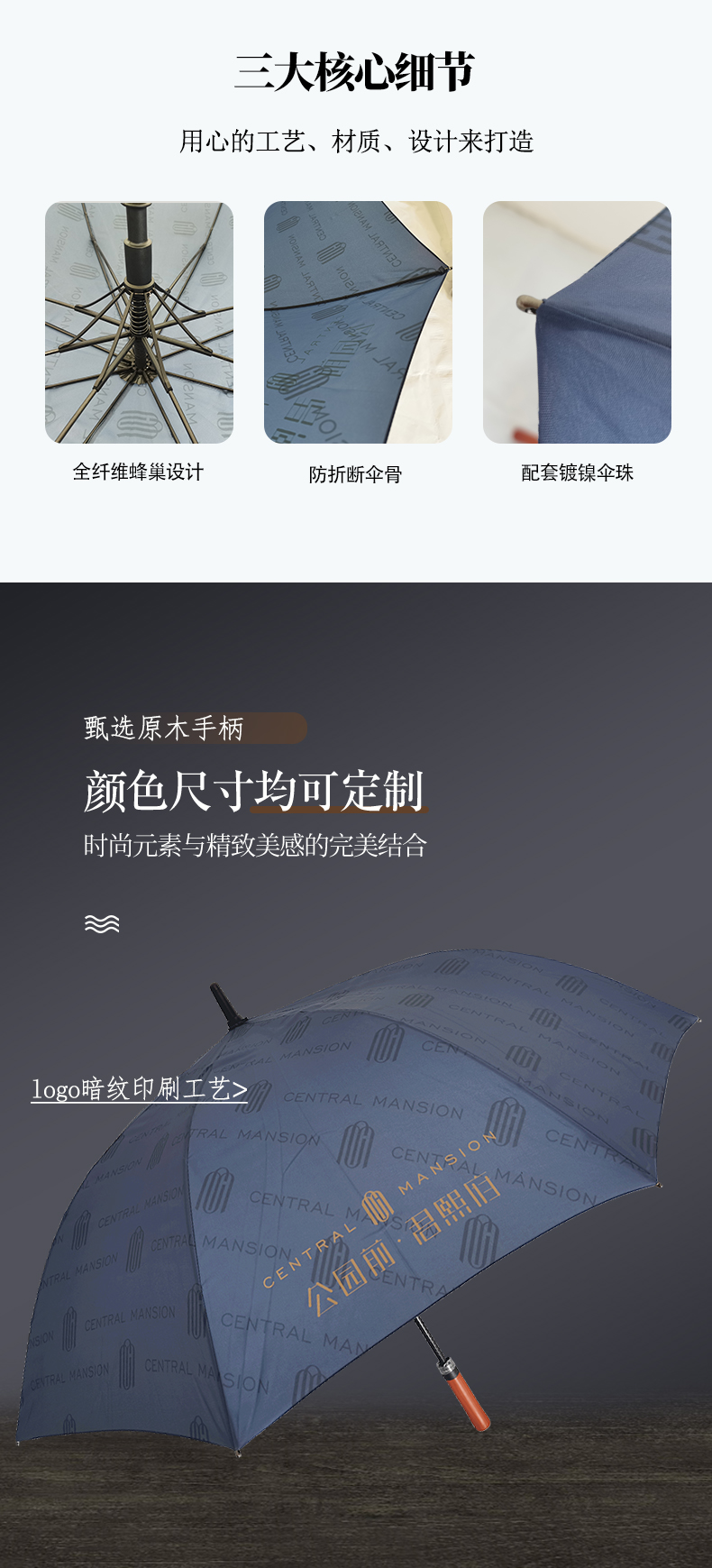 27寸加大全纤维高尔夫双人直杆礼品定制雨伞